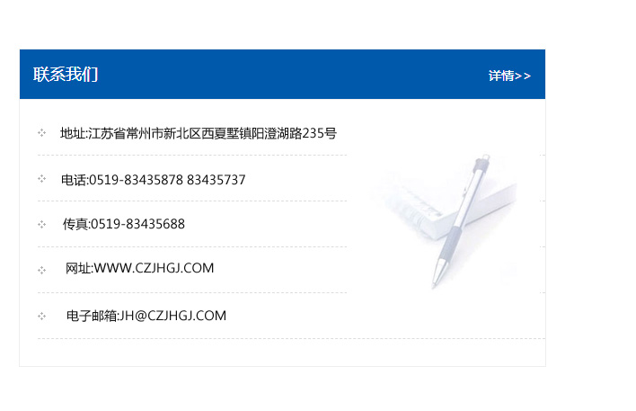 地址:常州市新北區友邦商務大廈1幢16、17層  電話:0519-85101652  傳真:0519-85112595  郵編:213022  網址:www_cz-jiayue_cn.hj-invest.com  郵箱:xiajifengaa@163.com